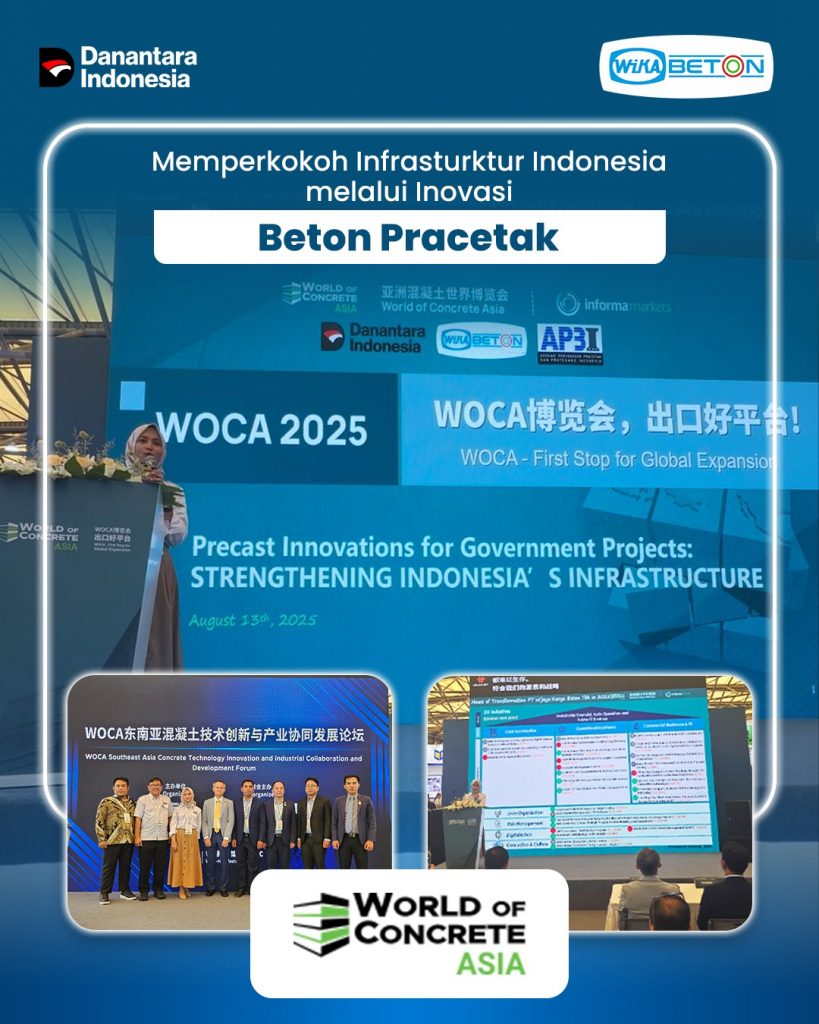 PT Wijaya Karya Beton Tbk (WIKA Beton) kembali melangkah hingga ke kancah internasional. Melalui partisipasi dalam forum World of Concrete Asia (WoCA) 2025 di Shanghai, Tiongkok, yang dihadiri lebih dari 650 peserta pameran dan 40.000 pengunjung professional dari 52 negara, WIKA Beton hadir untuk membuktikan komitmennya sebagai perusahaan pracetak terdepan di Indonesia.